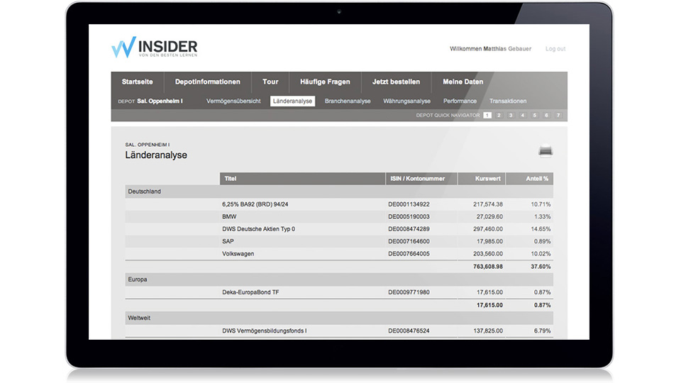 VV insider je sistem koji je u potpunosti razvijen prema potrebama klijenta. Pored modula za import finansijskih podataka od kojih su generisani grafikoni i tabele, razvijen je i korisnički sistem gde je članarina naplaćivana putem PayPal-a.